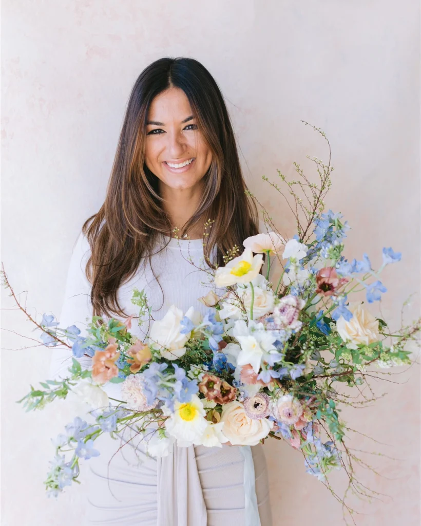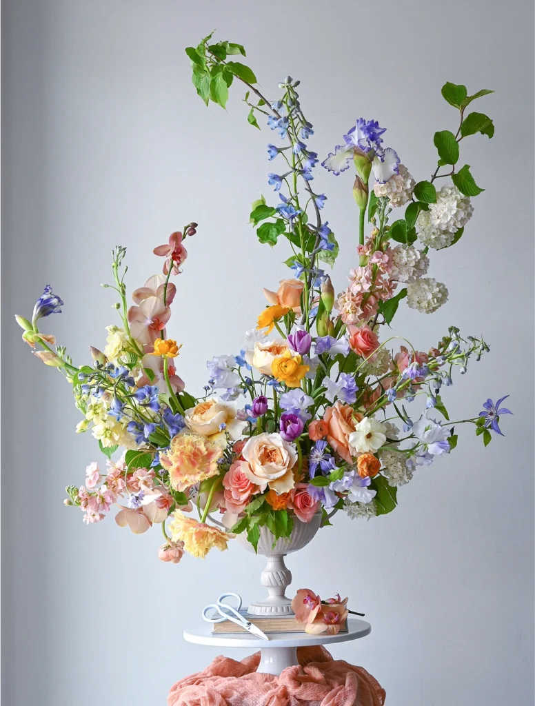 Mi estilo se basa en lo etéreo. Siempre busco composiciones ligeras y llenas de movimiento, pero también delicadas. No busco bordes abruptos ni ásperos, busco continuidad, que la mirada recorra el arreglo desde el centro hacia la derecha y hacia la izquierda… Quiero que se sienta como una historia; la narrativa es importante, con un principio, un nudo y un final que te atraiga. Por eso uso muchas flores pequeñas y texturas… todo para crear esa sensación de algo no solo romántico y femenino, sino verdaderamente etéreo.