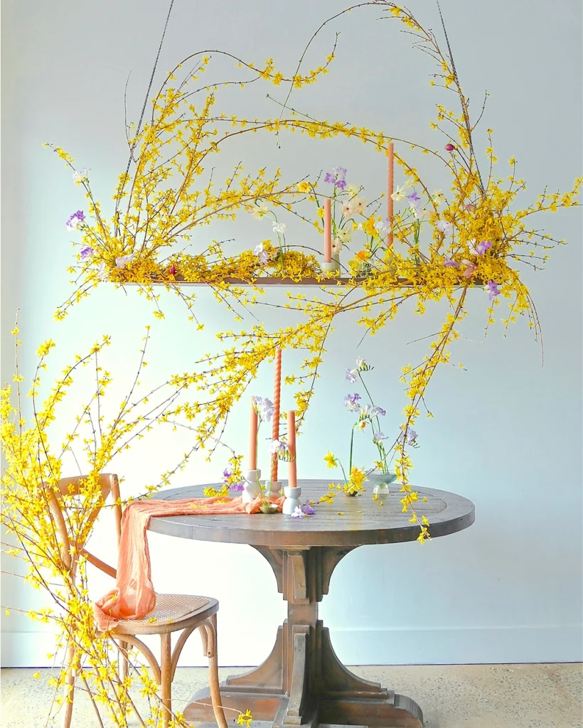 El color también me viene de la naturaleza. A veces me fijo en pequeños detalles, como el interior de un tulipán naranja, que puede tener un centro violeta intenso y un toque de amarillo. Esa combinación puede ser espectacular. Me encanta inspirarme directamente en esos momentos naturales. También me fijo en la moda, especialmente en casas como Dior y Chanel, para ver qué colores usan los diseñadores en ropa e interiores. También presto atención a lo que está ocurriendo en pintura y diseño de espacios. Y cuando una novia me da libertad creativa, me gusta introducir un color de tendencia. Ese verde chartreuse suave está por todas partes ahora mismo y creo que está a punto de despegar aún más.