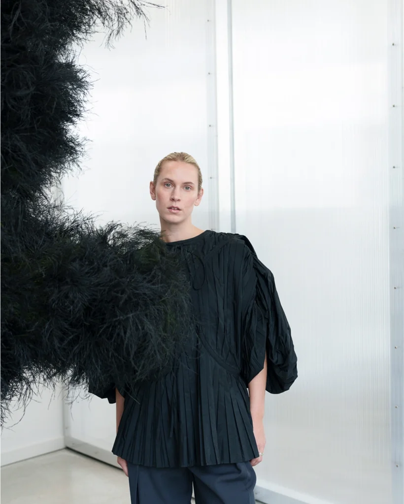 Esa es una pregunta difícil… Creo que tu red de contactos y la gente que conoces son fundamentales para empezar. Creo que tuve mucha suerte porque tenía una buena red de contactos y porque empecé en la ciudad donde crecí, una ciudad donde, cuando empecé, mucha gente buscaba lo que yo hacía. Estudié moda. Y durante mis estudios, ya hacía estilismo para campañas, etc., o simplemente trabajaba como asistente para varios estilistas. Así que creo que un buen comienzo es ayudar a otros a descubrir lo que te gusta, a probar cosas diferentes, no solo a participar en eventos. También puedes ayudar en el diseño de escenografía para un teatro o algo similar, para probar cosas diferentes y ponerte a prueba antes de decidir qué camino tomar. Porque creo que eso también puede influir mucho en tu estilo.