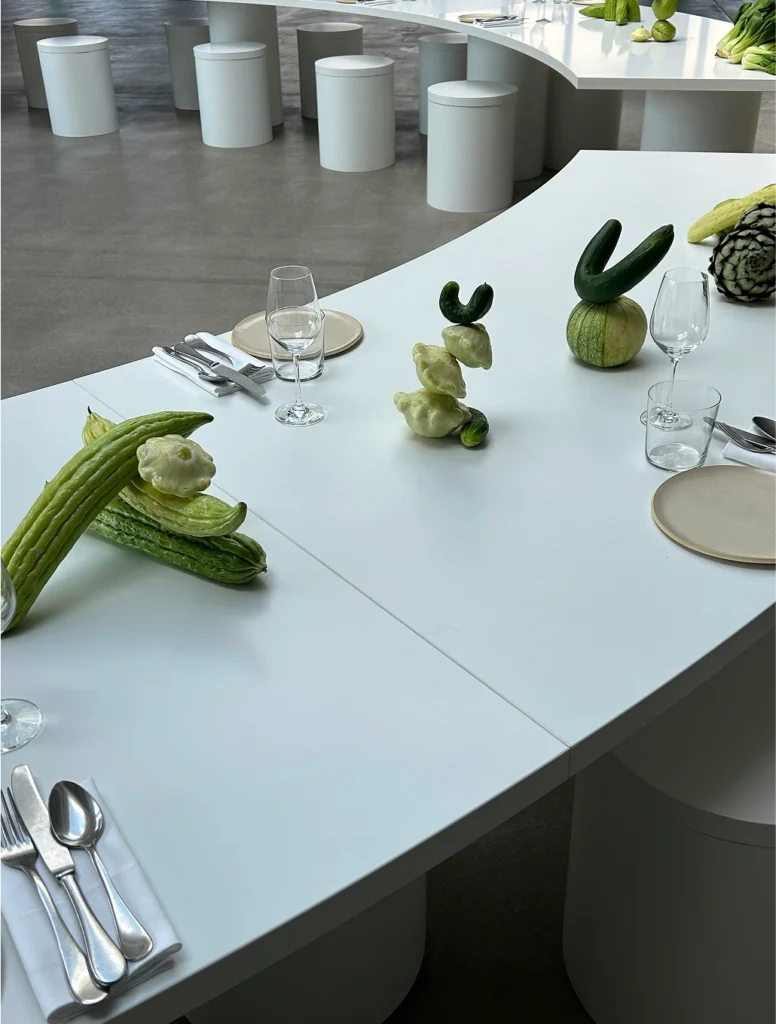 La naturaleza y las ciudades me inspiran constantemente. Creo que siempre me inspirarán, porque siempre pienso que hay una gran diferencia entre ver un árbol en una ciudad y uno en un bosque, porque siempre se puede apreciar su silueta. Creo que eso es lo que me interesó tanto por las formas en general. A menudo es como un árbol que vi frente a una casa o lo que sea. ¿Qué me inspira ahora mismo? Puede ser de muchas cosas. Soy muy abierto de mente, me inspiro en todas las direcciones, y me inspiro en todo, como la naturaleza, el arte, la forma de un coche; puede ser cualquier cosa, pero creo que lo que más me inspira es, por supuesto, cómo la naturaleza en una ciudad se desenvuelve a su manera, en una especie de paisaje urbano. Creo que lo he dicho mil veces, pero sigue inspirándome cuando veo un arbusto trepando por un muro en una autopista o algo donde la naturaleza pasa desapercibida. No solo en Berlín, sino también en Milán, por ejemplo, tienen hermosos cipreses por toda la ciudad.